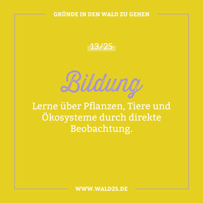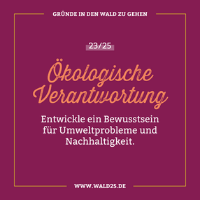 Es gibt mindestens 25 gute Gründe in den Wald zu gehen. Wir vermitteln euch Tools, um in die tägliche Routine 25 Minuten zur inneren Ruhe und Achtsamkeit zu finden, um im Alltag Ausgleichs- und Auszeitphasen zur Entschleunigung zu schaffen.